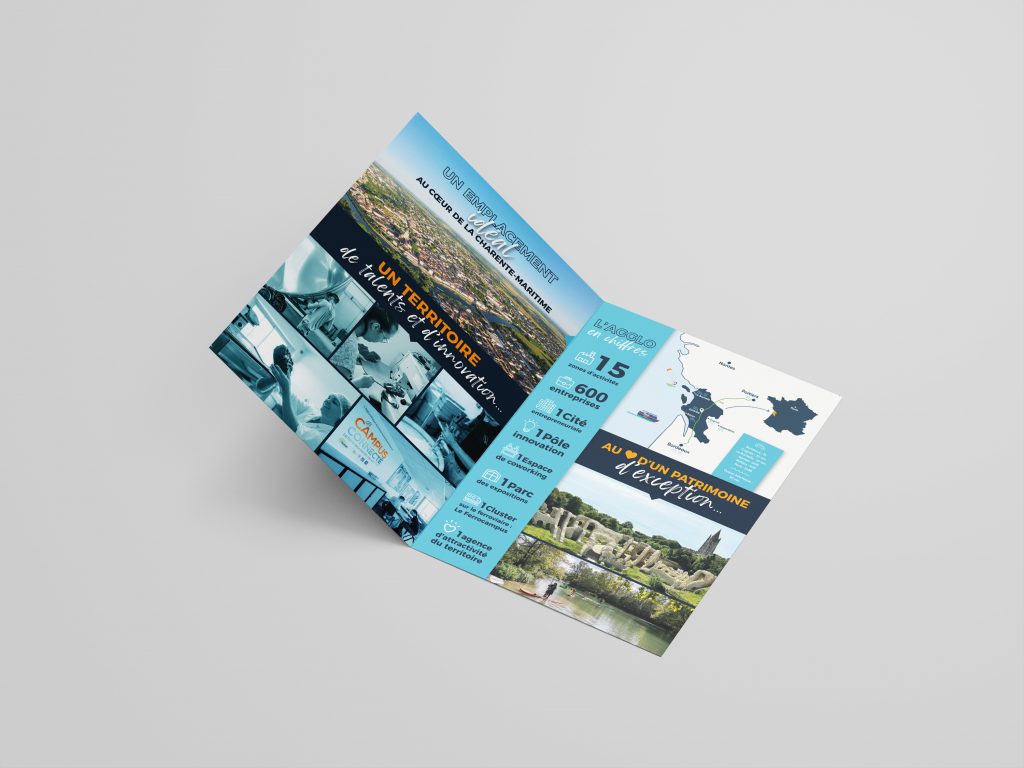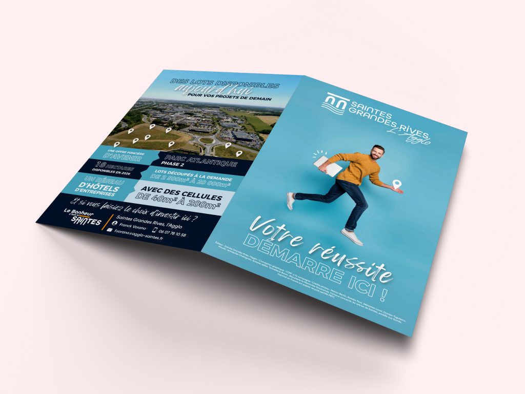 J’ai eu le plaisir de collaborer avec l’Agglomération de Saintes pour créer une plaquette destinée à convaincre des investisseurs de s’implanter sur l’Agglomération de Saintes. Ce support met en avant une zone d’implantation stratégique à travers des données chiffrées, des informations pratiques et les atouts patrimoniaux du territoire. L’objectif : valoriser l’attractivité économique de la région tout en reflétant son identité.